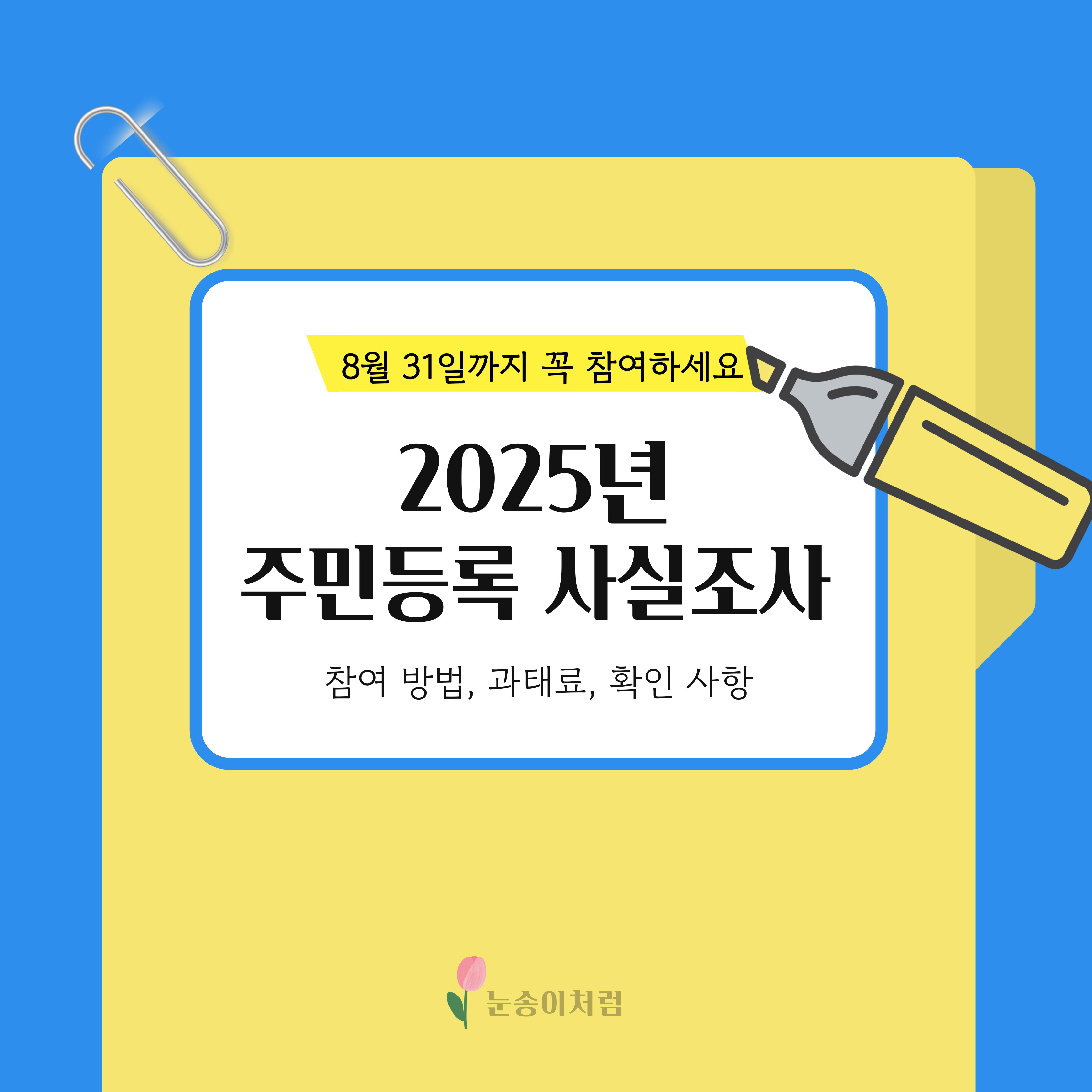 2025년 주민등록 비대면 사실조사는 8. 31(일)까지 참여가능 하며,